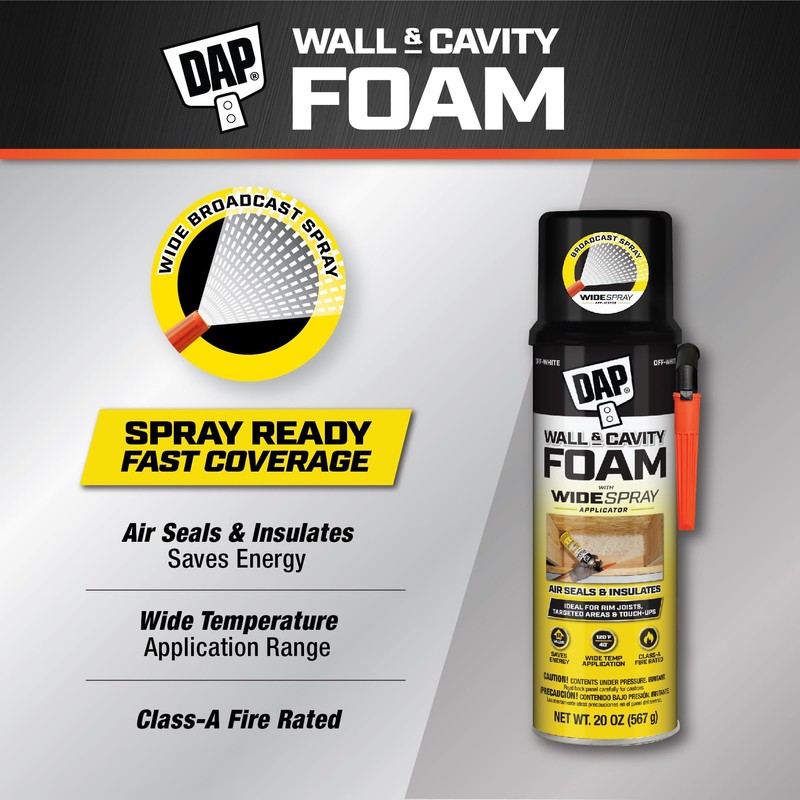 DAP Wall and Cavity Foam with Wide Spray Applicator Aerosol, Off White, 20 oz. (7565000370)