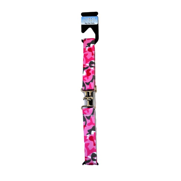 Dapper Snappers Made in USA Girls Big Kids Elastic Stretch Belt with Silver Metal Clasp Buckle, Girl Cat Camo