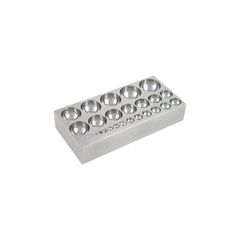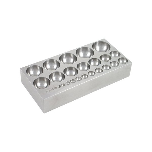 - This flat dapping block has 27 half-sphere depressions from 1/16 - 1” (1.6 mm - 25.4 mm) in diameter.