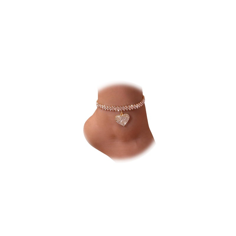 DarBudMay Summer Beach Rhinestone Chain Heart Anklet Bracelet,Crystal Anklets,Boho Foot Chain Anklet Bracelet Rhinestone Leg Bracelet Jewelry for Women, alloy, alloy