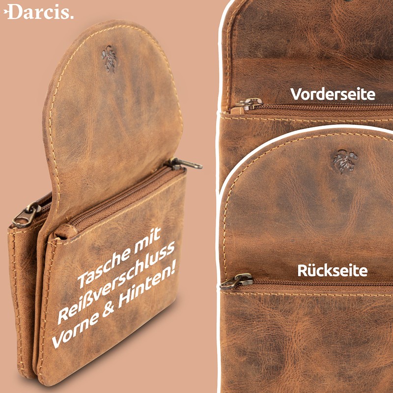 Darcis Key Case Brown – Key Bag Made of High-Quality Cowhide Leather – With 3 Key Rings – Key Case with 2 Zip Pockets – Leather Key Case