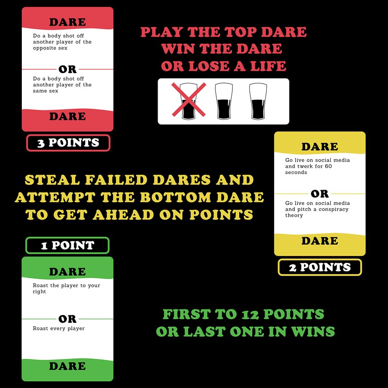 Dare or Dare - El mejor juego de fiesta para beber - para estudiantes universitarios y adultos divertidos - 3-9 jugadores
