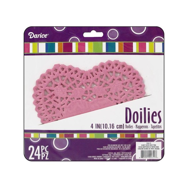 Darice Paper Doily 4" Heart Pink 24pc