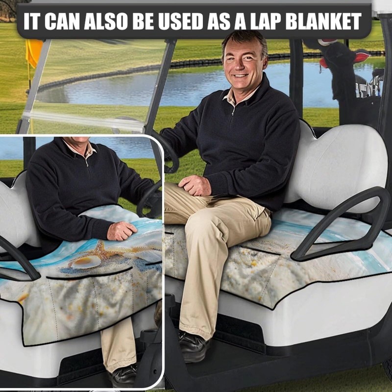 - 【Easy to Use】Our golf cart seat blanket features 4 front pockets for you to store some accessories, such as sunglasses, towel, gloves, water bottle.Universal design fits easily onto the armrests of most golf cart models, it is portable and easy to disassemble and clean