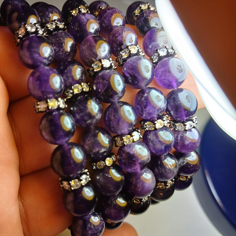- ✨ Eye-Catching Natural Stone Elegance: The mesmerizing purple tones of 10mm cut amethyst stones and the perfect harmony of sparkling zircon rings between them add elegance to any wrist. Carry the energy of nature into your style