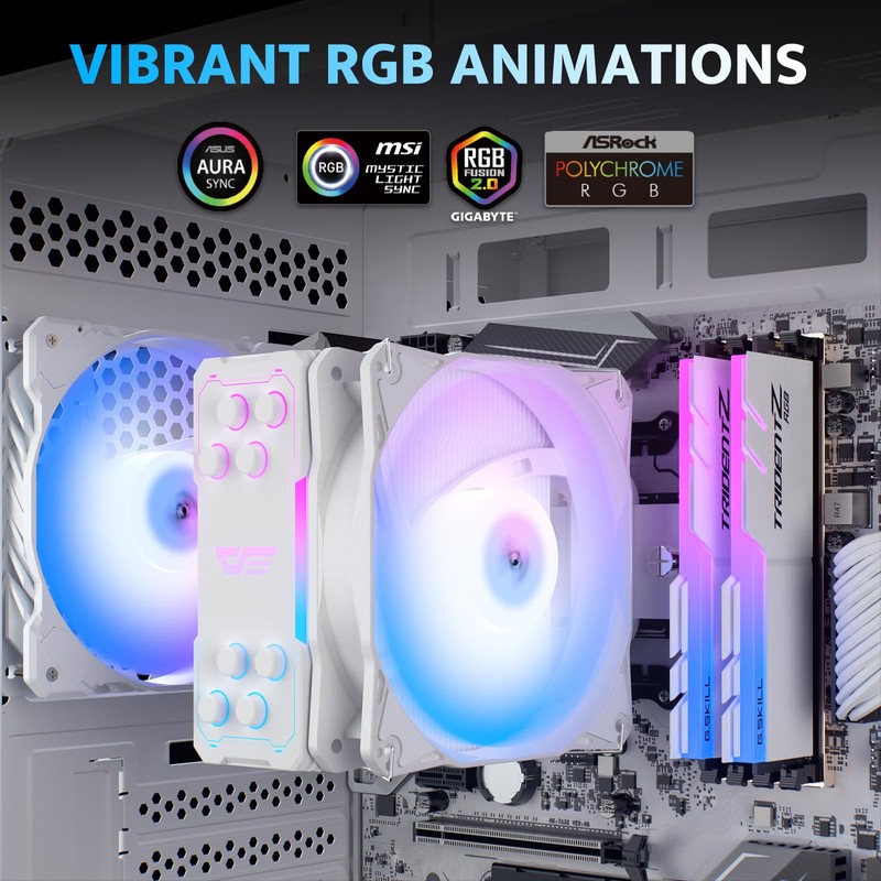 darkFlash Z4Pro Mist CPU Cooler, 120mm Single-Tower, TDP 200W, 4×Ф6mm Heatpipes, ARGB PWM PC Fans, CPU Air Cooler Compatible with Intel LGA115x/12xx/17xx; AMD AM4/AM5, 155mm in Height(White)