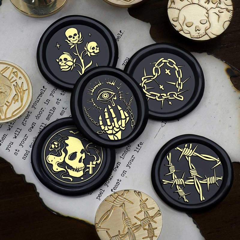 Darkness Wax Seal Stamp - Round Brass Prop, 0.98 Inch/25mm Removable Barbed W...