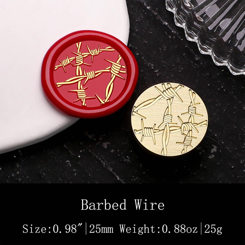 Darkness Wax Seal Stamp - Round Brass Prop, 0.98 Inch/25mm Removable Barbed Wire for Envelopes, Letters, and Documents