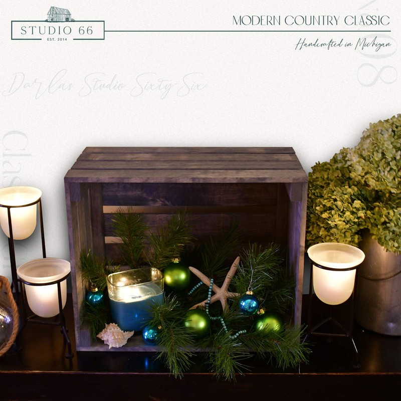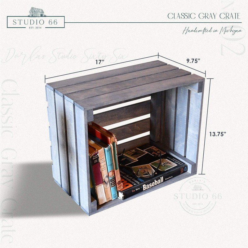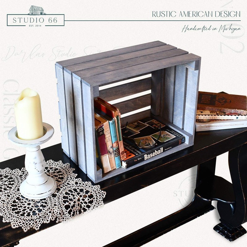 New rustic wood crate hand stained with an antique gray finish.