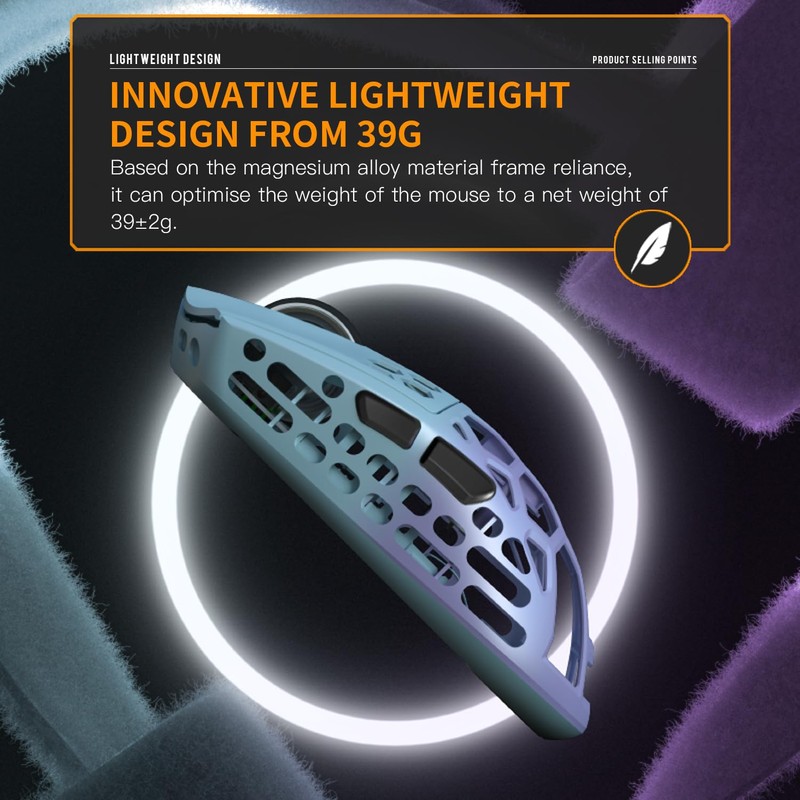 • 【39g Magnesium aluminum alloy】Pure right-handed ergonomic design, durable and light weight, perfect body design takes good care of various grip hand shapes and easily supports the palm of the hand. Perfect for reducing palm sweating and wrist fatigue during long-term use