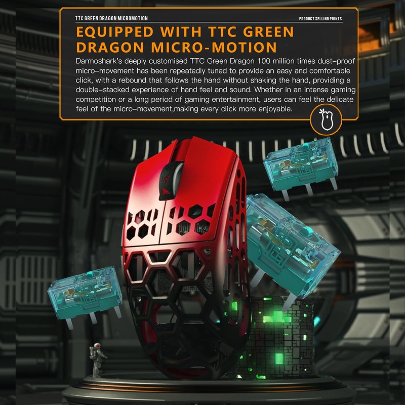 • 【PAW3395 Sensor】Darmoshark wireless gaming mouse adopts top 3395 sensor, up to 26000 DPI resolution, 650 IPS tracking speed, response speed can reach 1000-4000Hz, 50G acceleration, faster and more accurate than ordinary mouse, is committed to providing PC gamers the best Gaming experience