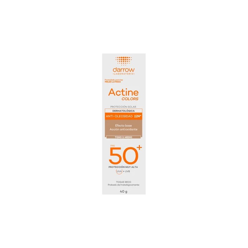 El Protector solar Darrow Actine Colors Tono 2 FPS50+ es adecuado para pieles mixtas a grasas.