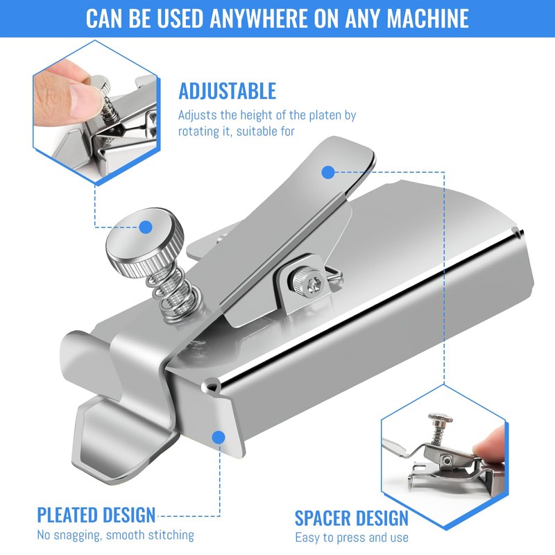 - 2. Adjustable screw for material thickness: the magnetic seam guide has an adjustable screw that allows you to easily process different fabric thicknesses.