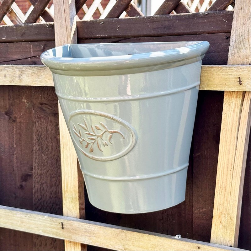 Darthome Glossy Wall Planter 21x23cm Ceramic Effect Plastic Semi Circular Garden Pot Decor (Grey)