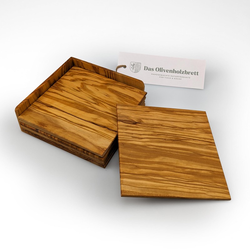 DAS OLIVENHOLZBRETT ® Coasters, 6 pieces, square (10 cm)