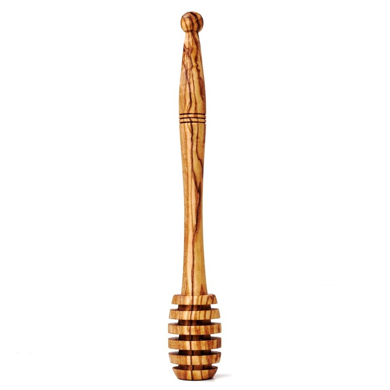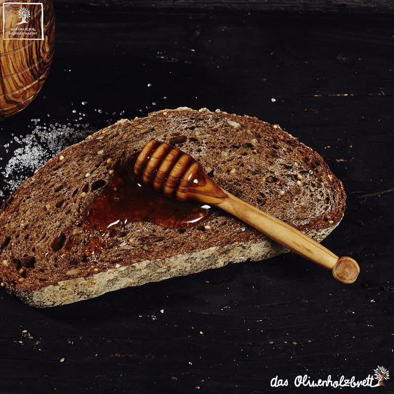 das Olivenholzbrett® Honiglöffel aus Olivenholz, Honigheber Honigspirale Dosierer von Honig & Sirup, 14cm