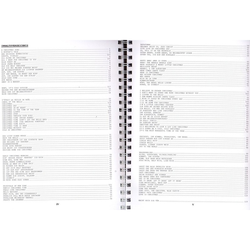 - Contents: A Christmas Song· A Winter's Tale· Aba haidschi bumbaidschi· Adeste, fideles· All Alone On Christmas· All I Want For Christmas Is You· All Begins · All Years Again · When the World Lost · When I Wake Up With My Sheep · The Lights Burn On The Christmas Tree · Open, Her Shepherds. On the berge, da the wind blows · Auf, ihr Hirten von dem Schlaf· Auld Lang Syne · Ave Maria· Away In A Manger · Baby, It's Cold Outside· Baking for Santa · Soon is Christmas time