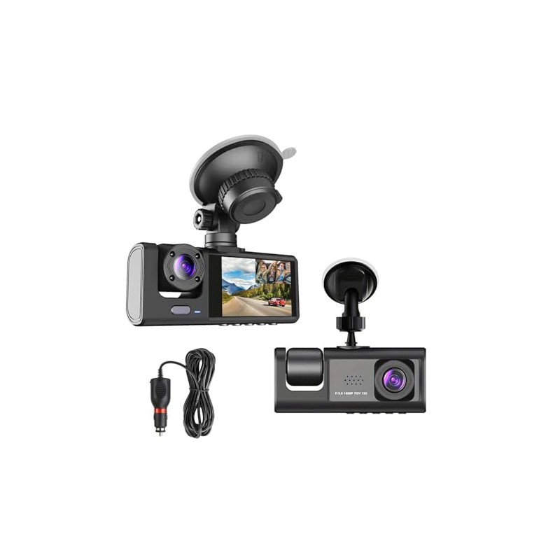 - 【3 Channel Dash Camera Front Rear and Inside】The 3 cameras can monitor the situations of front rear and inside of the car, which really protect driver and passengers' security.