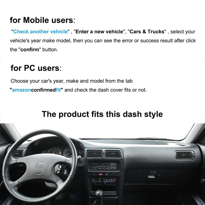 - Choose your car's year, make and model from the tab"amazonconfirmedfit" and check the dash cover fits or not.