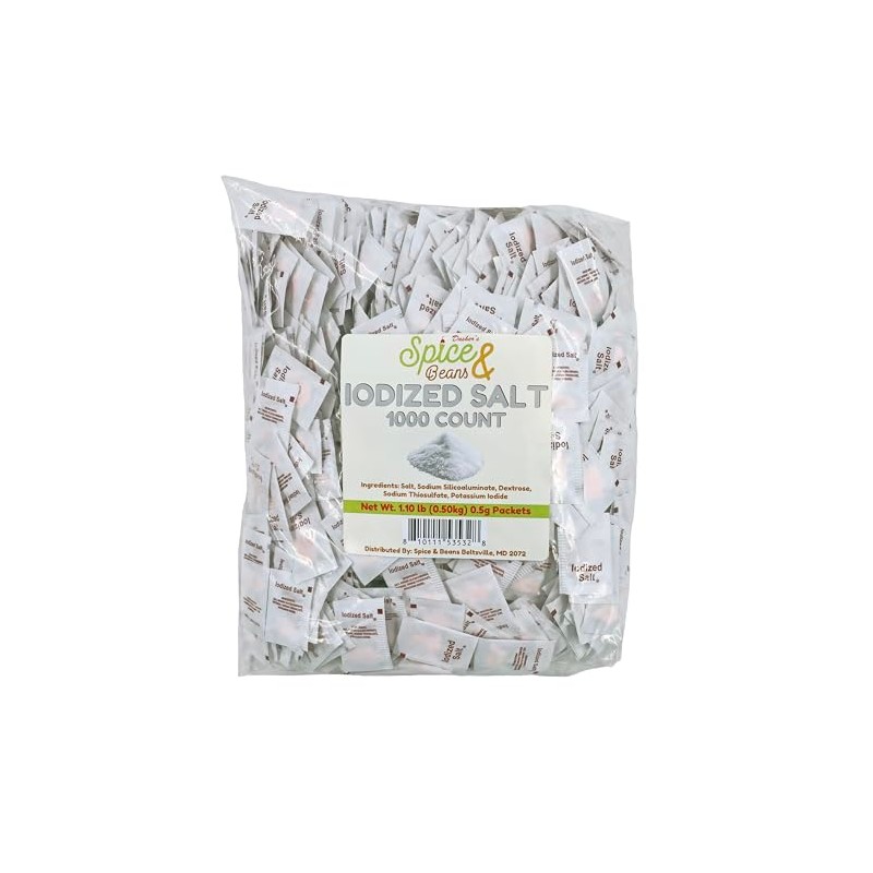 Gourmet Single Serve Iodized Salt Packets | By Dasher's Spice & Beans | 1000 Count
