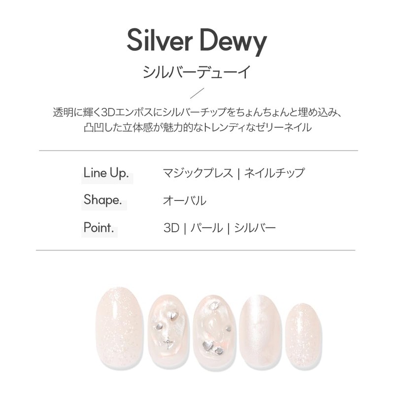 - Silver Deewy: This oval shape nail tip features a 3D embossed silver tip that shines in a three-dimensional appearance