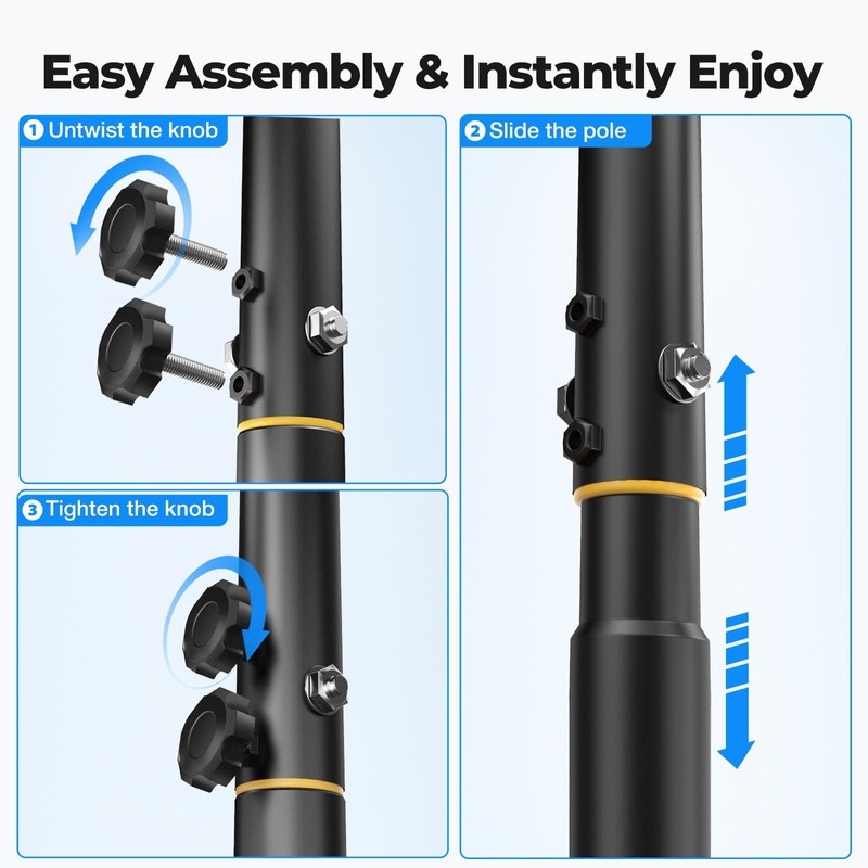 - Height adjustable basketball hoop ranging from 4.82FT to 8.53FT, with 12 adjustable levels. Perfect for players of all ages and skill levels. Simply twist the knob to select the desired height, quick and effortless.