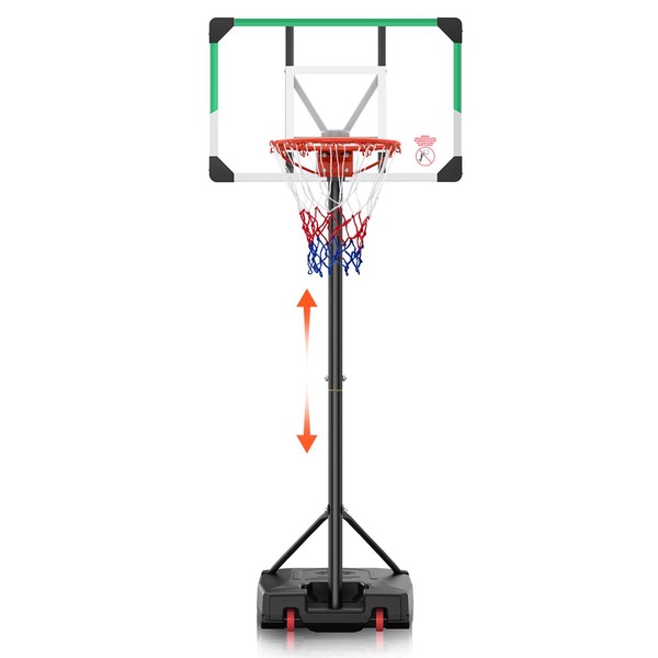 DASHINGNOAH Portable Basketball Hoop & Goals 4.82-8.53FT Height Adjustable Basketball Hoop Goal with 32Inch Backboard, Fillable Base and 2 Wheels Pool Basketball Hoop Outdoor for Teenagers/Youth