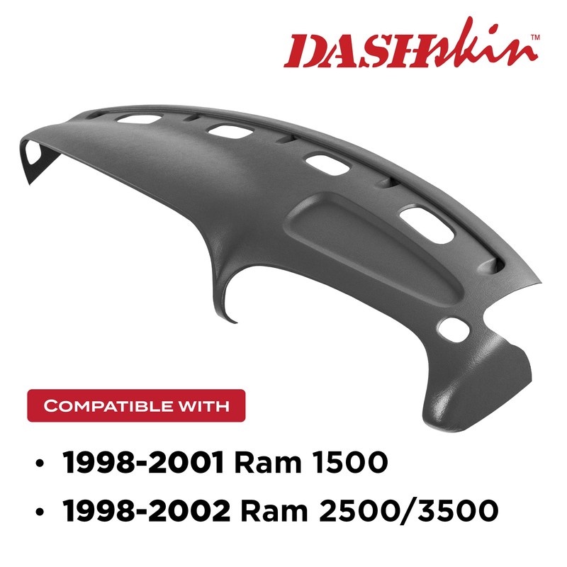 Fix your 98-01 Dodge Ram dashboard and guage cluster bezel with a molded ABS dash cover kit from DashSkin! These covers are molded to the exact shape of your Ram's dashboard and bezel, and mount right over the top of the dash and bezel to cover cracks and holes. They require no special tools to install, and mount using silicone adhesive (included). Removal of the factory bezel is not required for install (in fact we do not recommend removing it as they are extremely brittle and easy to break. When installing the main top dash cover, you will want to inch the bezel out JUST far enough to tuck the lip of the dash cover behind, and gently back forward after install). The workmanship of the covers are warranted for life against cracking, warping, etc. Dash Skins even work great with large pieces of dash missing, as long as there is enough dashboard left on all edges (perimiter) to serve as a stable and level foundation for the cover. If any of your bezel's clips are broken, we do not recommend using this cover, a replacement would be a better investment. If you have cracks you will be covering, we advise cleaning your original dashboard well with industrial degreaser, and bracing any cracks using  100% silicone RTV adhesive just before applying the skin to prevent further cracking or rattling. BEZEL COVER IS NOT A REPLACEMENT PART, IT IS AN OVERLAY LIKE THE DASH COVER.