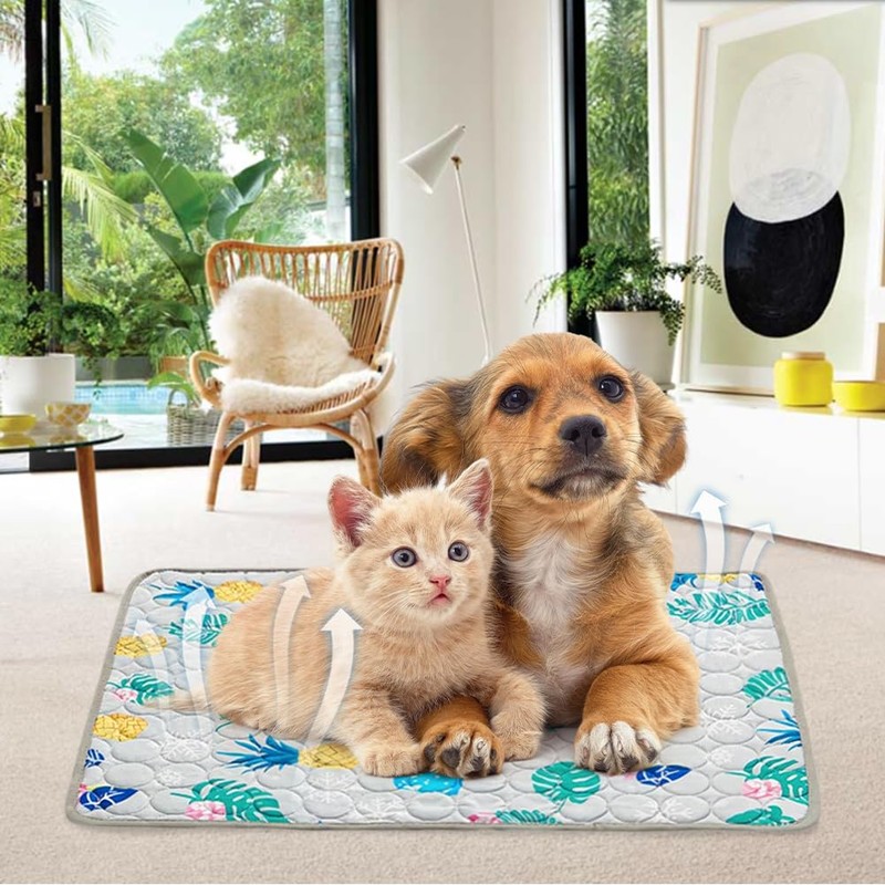 DASIAUTOEM Cooling Mat for Dogs and Cats, Pet Cooling Mat, Non-Toxic Gel, Self-Cooling Pet Cooling Mat, Dog Mat Home Outdoor Size XL (100 x 70 cm) (Grey Pineapple)
