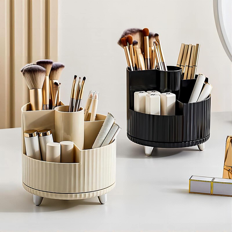 - 360° rotatable: The high-quality wheel on the bottom ensures a very even, stable and easy rotation. Simply turn the make-up brush organiser to the left or right to easily store or remove your items. This storage box makes your make-up and make-up easy beauty essentials are always at hand.