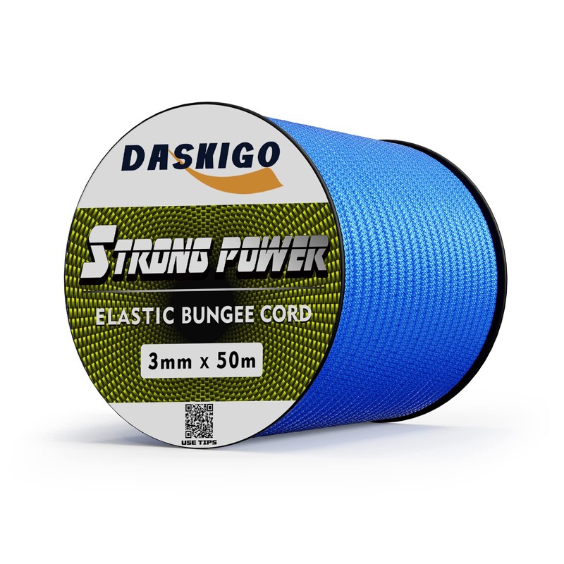 DASKIGO Elastic Bungee Shock Cord 3-8mm (Light Blue, 1/8'' x 164FT)