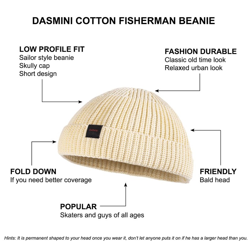 DASMINI Fisherman Beanie Hats for Men Women,Knit Trawler Rollup Edge Skull Cap,Watch Cap,Docker Beanie Spring Fall Short Mini Hats (Cream, Size M)