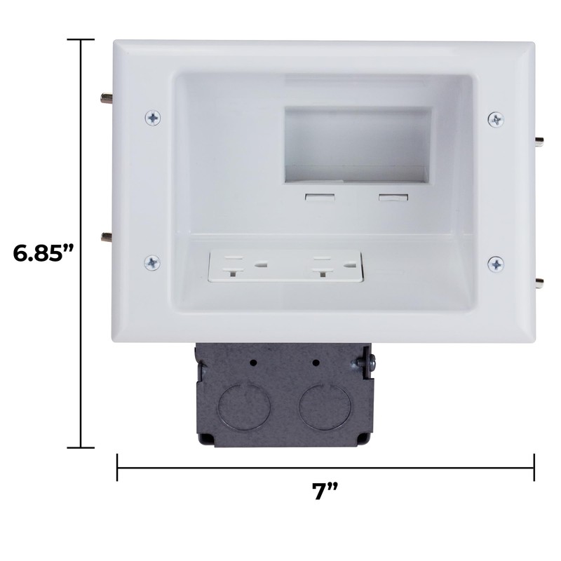 DATA COMM Electronics 45-0072-WH Commercial Grade Recessed Wall Plate Cable Pass Through, Mid-Size Low Voltage AV/HDMI Cord Hider with 20A Duplex Power Receptacle, TV & Home Theater, White