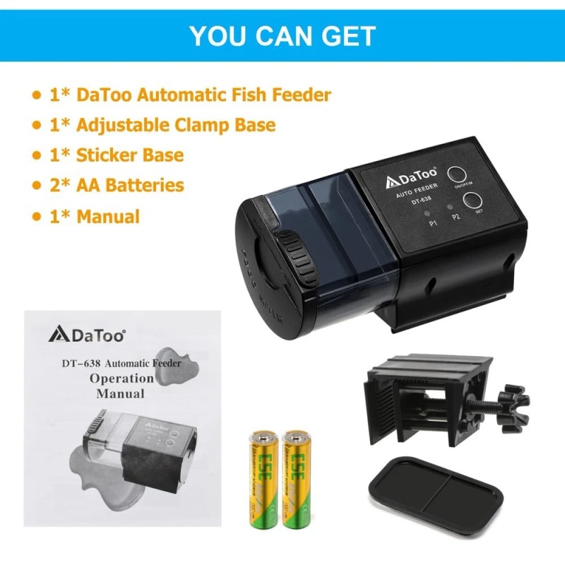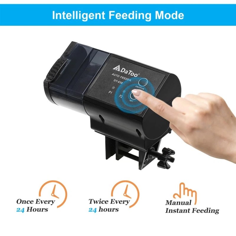 【DaToo Automatic Fish Feeder】: Who can help you take care of your lovely fish when you are busy at work or away on holiday? This is the question every aquarium hobbyist is thinking about. Now DaToo can help you solve this worry easily. DaToo automatic fish feeder has intelligent feeding mode, precise customised feeding amount, airflow moisture proof function, three installation methods, so you can focus on your work or enjoy your holiday without any worry!