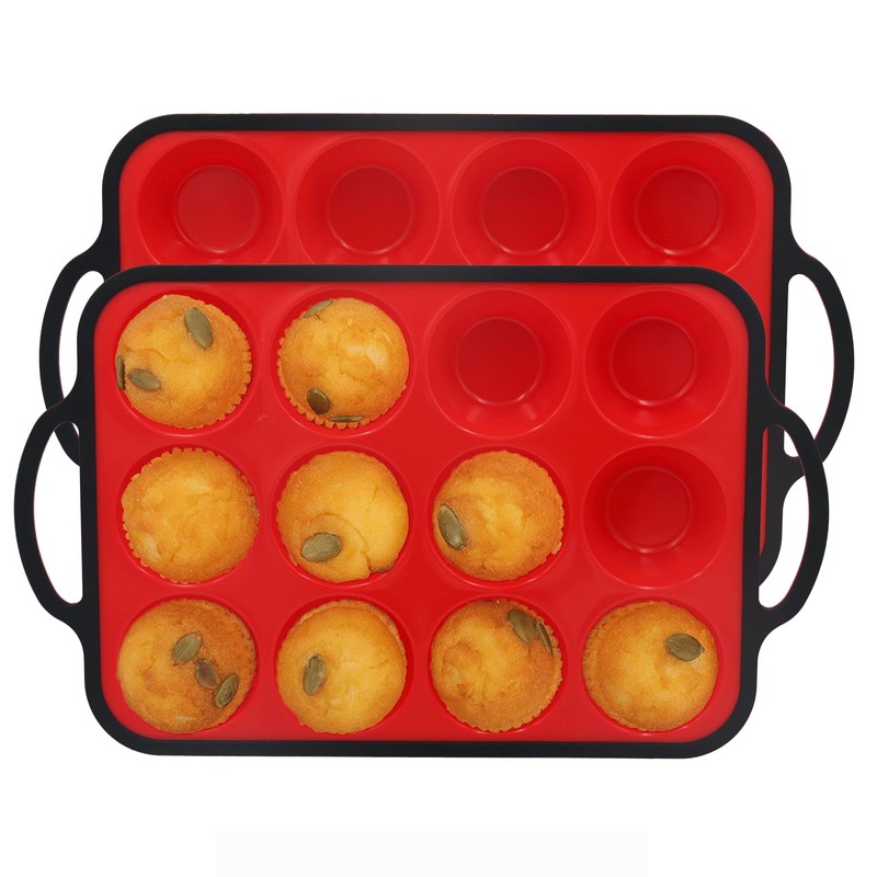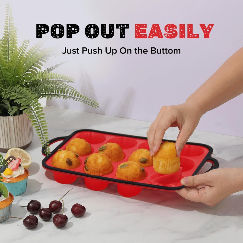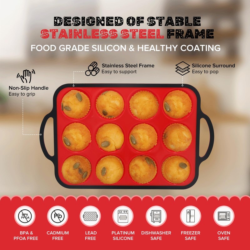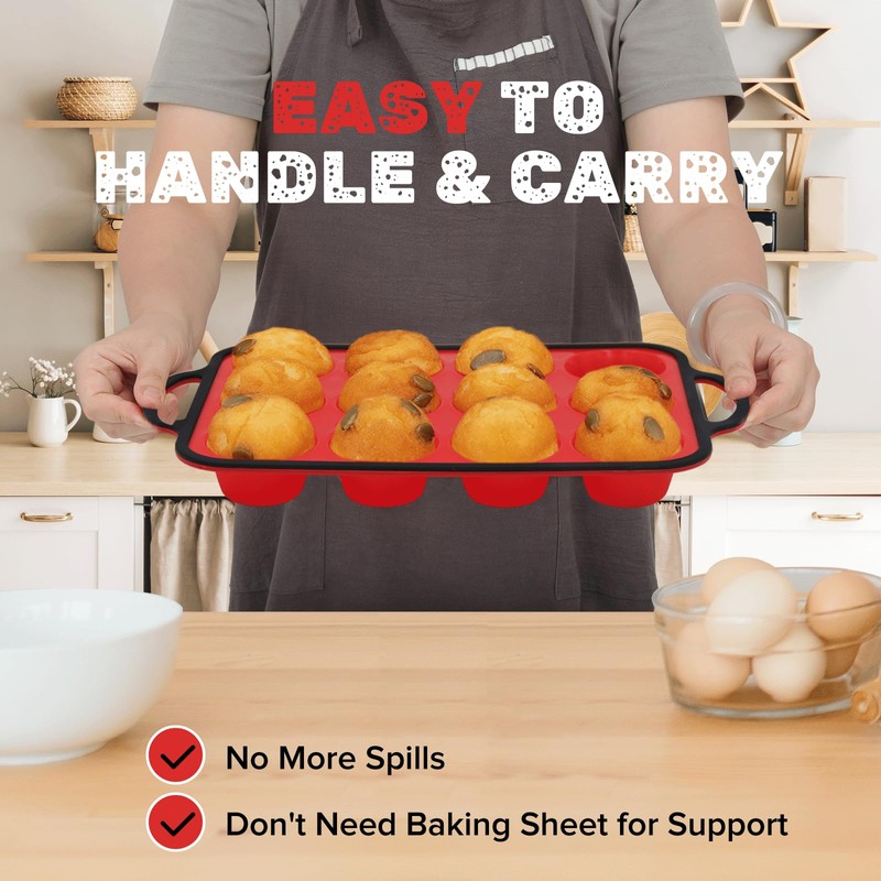 Datunsu Silicone Muffin Pan, Metal Reinforced Frame Regular Size 2.8 Inch Cupcake Pan with Handle 12 Cups Nonstick Muffin Tray for Baking
