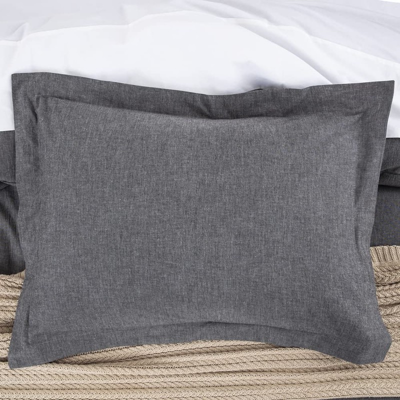 DAUAOTO Cotton ChambrayPillow Shams, 2 Pieces Pillowcase Set, 20"x36" Pillow Cover with Decorative Flange, Charcoal Gray/King