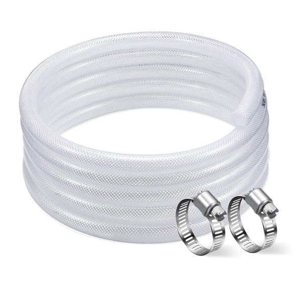 DAVCO 1/4" ID - 100 ft Heavy Duty Braided Clear Plastic Vinyl Tubing, Flexible High Pressure Reinforced PVC Plastic Tube Hose, Non-toxic, BPA Free, with 2 Stainless Clamps