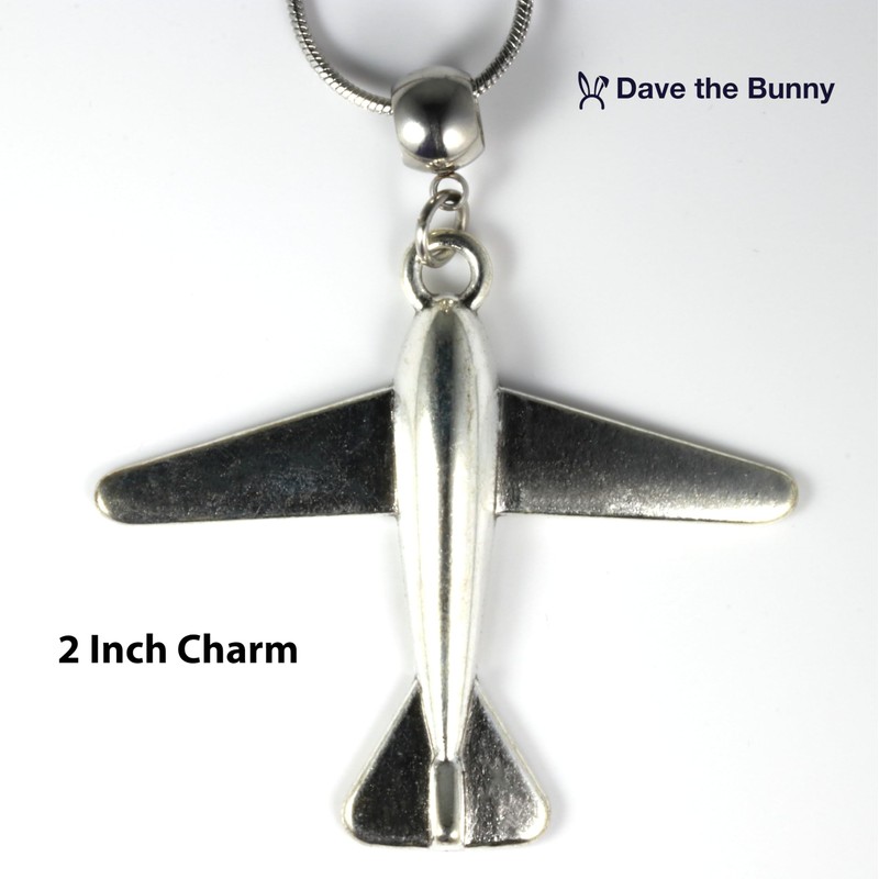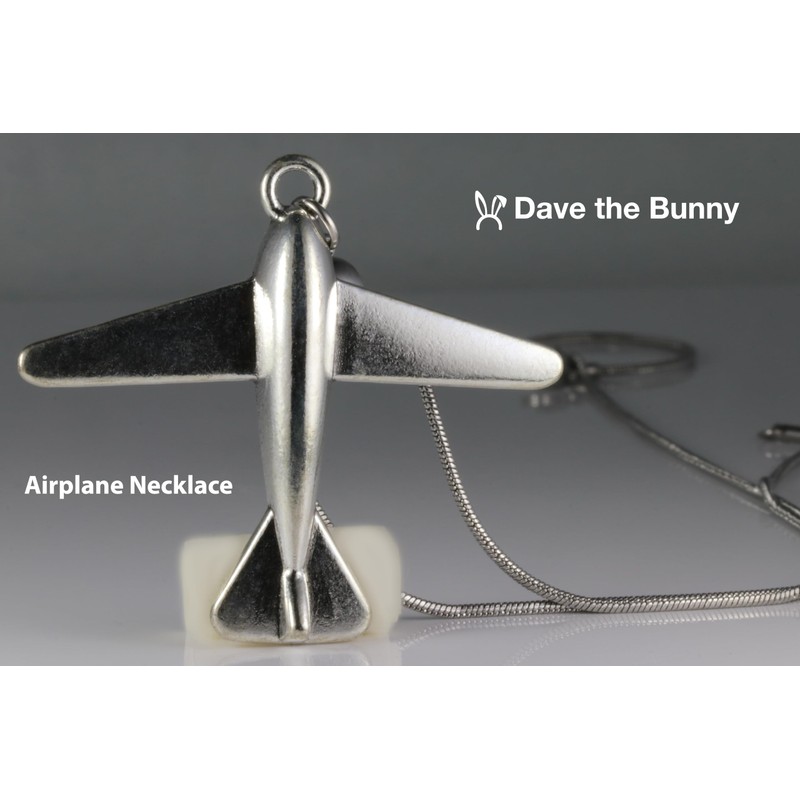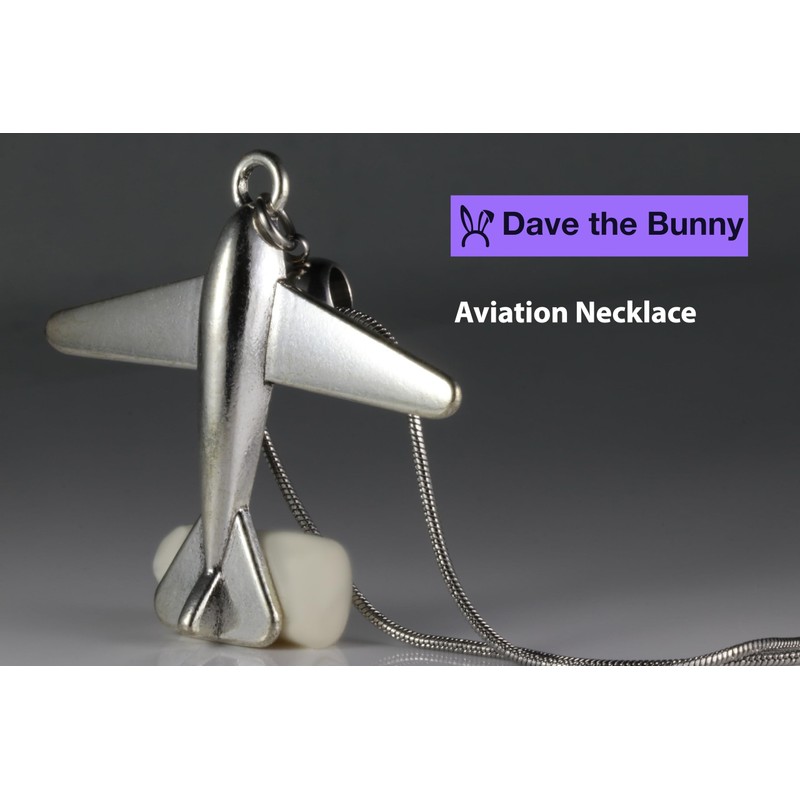 Dave The Bunny Airplane Necklace - Airplane Jewelry for Women and Men Stainless Steel Snake Chain with Alloy Charm - Perfect Flight Attendant Costume Accessory and Flight Essentials Airplane stuff,