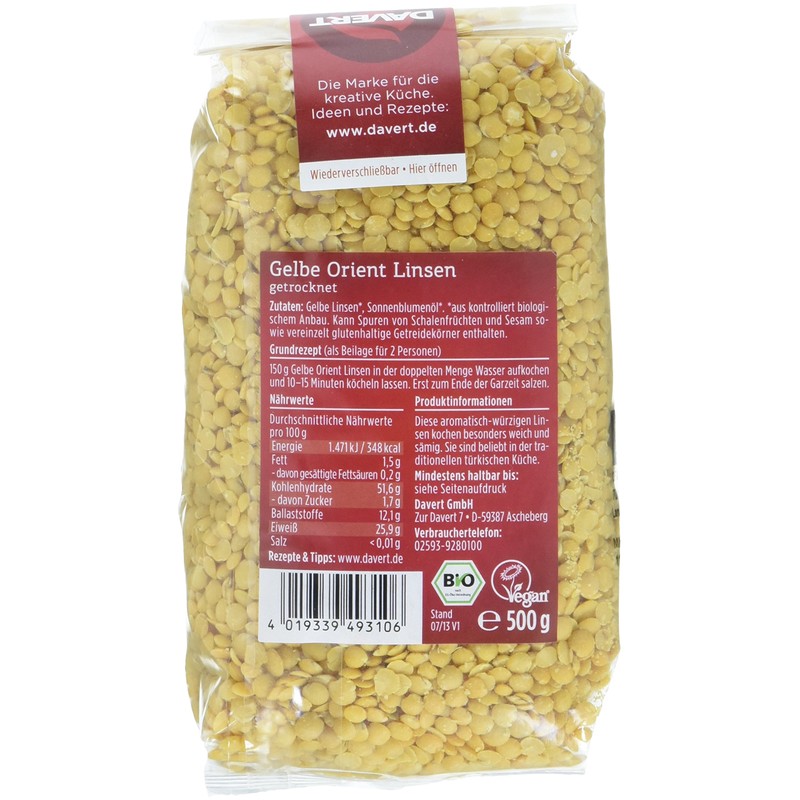 Davert Yellow Orient Lentils (1 x 500 g) - Organic