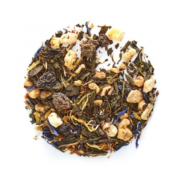 • Ingredients : Pineapple (pineapple, cane sugar, citric acid, sulfites), gr een tea, black currants, cornflower petals, calendula petals, safflowers, natural passion fruit flavouring.