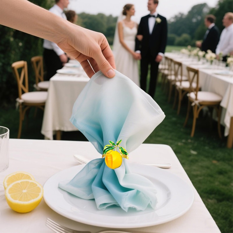 - ✨ Fruit Design: Cute & Elegant : Make your outdoor parties with fruit napkin rings ! Each gold napkin rings features a vivid yellow lemon with green leaf design,Cute and lifelike,Metal napkin holders for cloth Napkins add more chearms to your daily dining,Refresh your summer table with napkin rings set of 6,Yellow rings for Napkins bring you a good wish in baby shower parties