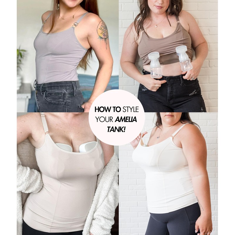 - HIGH QUALITY LUXURY DESIGN – Stop changing in and out of a different bra and top to pump and wear the Amelia Tank with a built in hands-free pumping liner. Our fabric is designed to be comfortable all day and night with soft compression. Soft enough you will want to wear with your sweats and supportive enough to wear under your work outfit and tucked into high waisted pants for a smoothing look. The Amelia Tank is a must have for pregnancy and postpartum support!