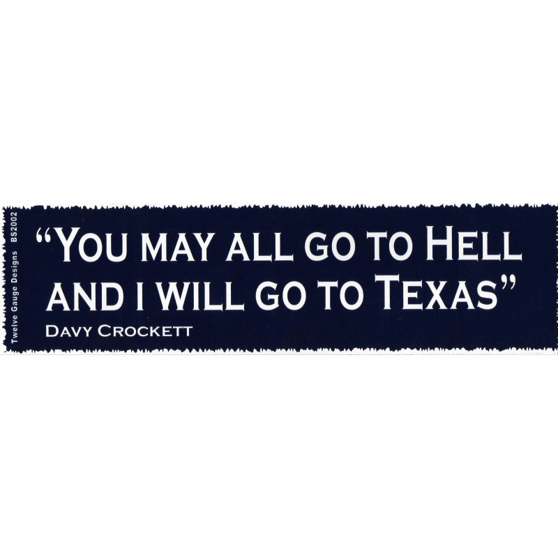 Davy Crockett "You May All Go to Hell"  Decal Bumper Sticker w two free stickers