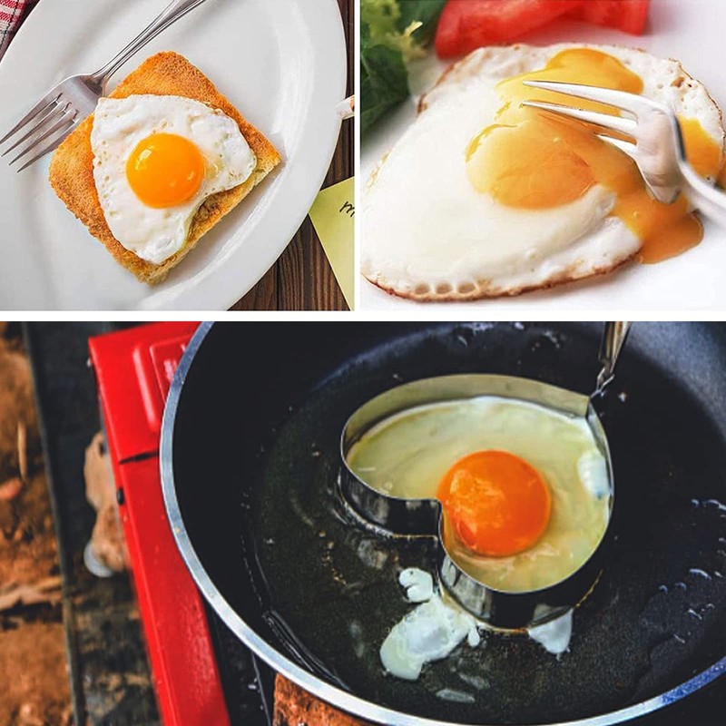 - [Easy to use]:Just put the ring into the heated pan, beat the egg in the ring and let it boil. The egg ring keeps the egg round and prevents the egg from leaking. After cooking, you can enjoy a delicious breakfast in minutes.