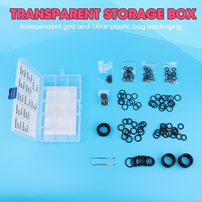 - Convenient Storage: The O ring set equipped with a transparent plastic box, all O rings are placed in separated small grid-shape space, which is convenient to carry, select and collect. And 003 to 013 with a extra separate transparent polyethylene bag to place, it reduce the risk of loss or lack of rings.
