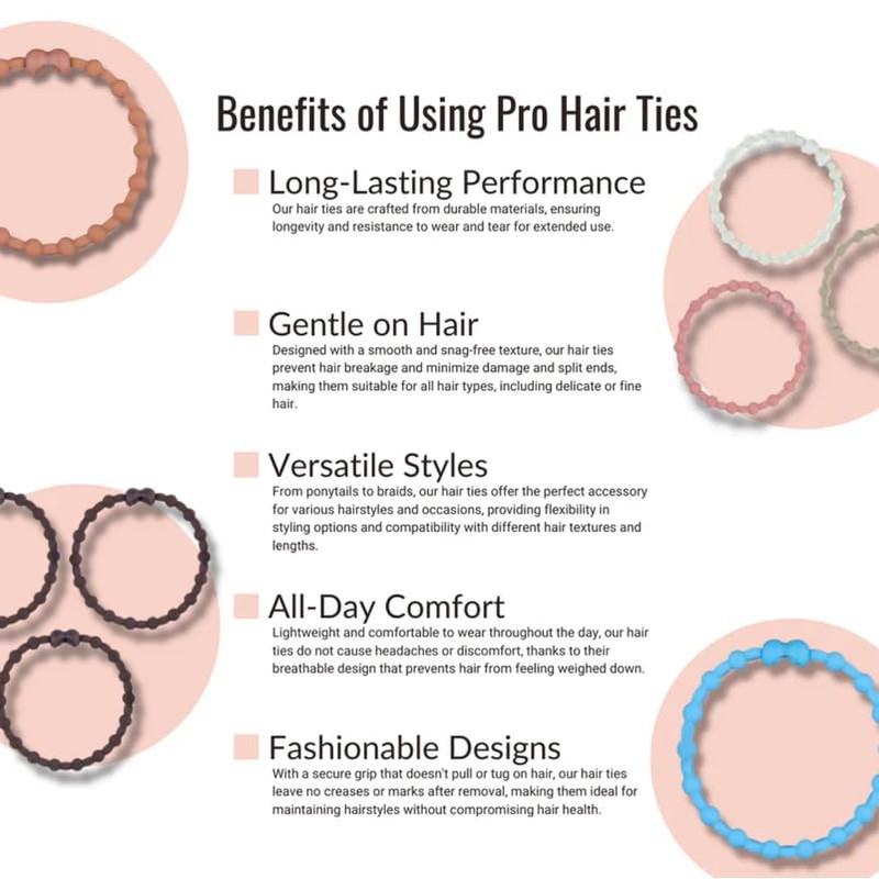 - Dedicated Hair Care Innovation: Our focus is solely on creating the best hair ties on the market. PRO Hair Ties are designed by hair care professionals to secure your hair comfortably and securely 24/7, protecting it from damage typically caused by traditional hair ties.