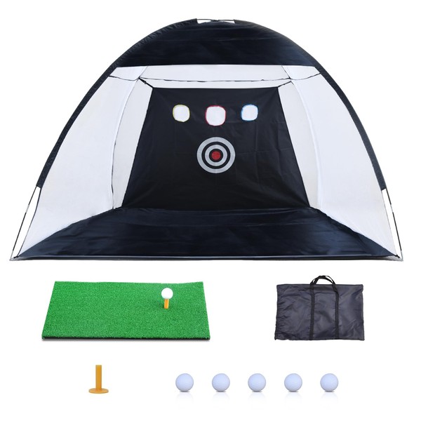- 【All-Inclusive Set】: The golf net comes with a target, mat, balls, tee, and carrying bag, providing you with everything you need for a comprehensive golf practice session. The target helps improve your aim, while the mat simulates the feel of a real golf course.