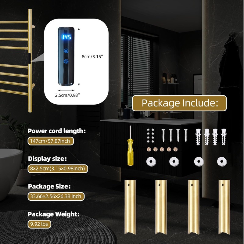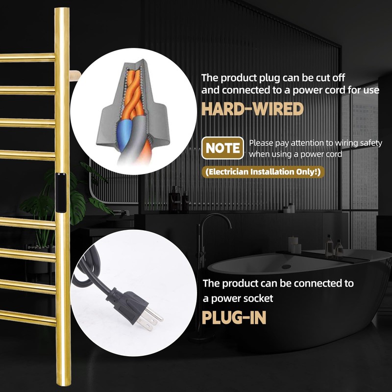 - 【Hard Wired/Plug-in Options】The Towel Warmer offers both hardwired and plug-in installation options, allowing you to choose the method that best suits your bathroom setup and preferences(NOTE: Electrician Installation Only!)