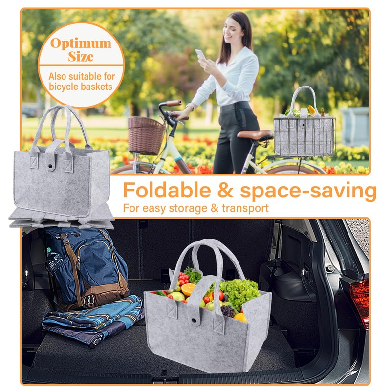 - Foldable felt basket: extended handles make it easy to carry this felt shopping bag. This shopping bag is incredibly soft and can be folded quickly and space-saving when empty.