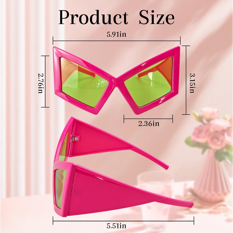 - Trendy Oversized Cat-Eye Design: Make a bold statement with large geometric cat-eye funky sunglasses in eye-catching hot pink. Retro meets fashion-forward for the ultimate party accessory